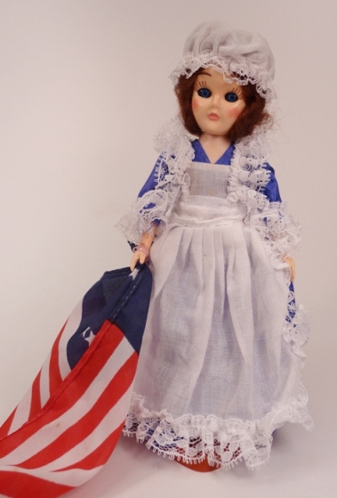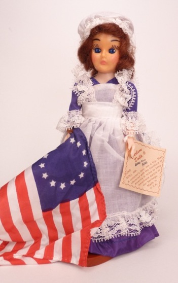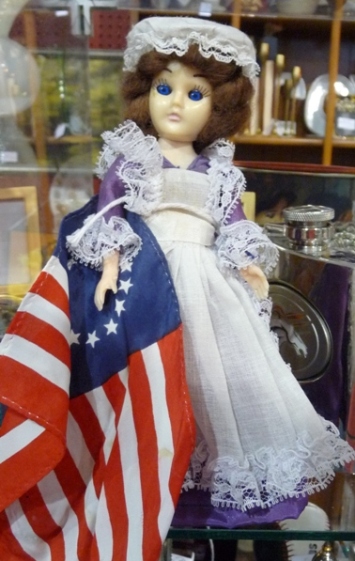 I found this Betsy in a red dress at an antique store in Colorado in 2010; she is missing her flag.