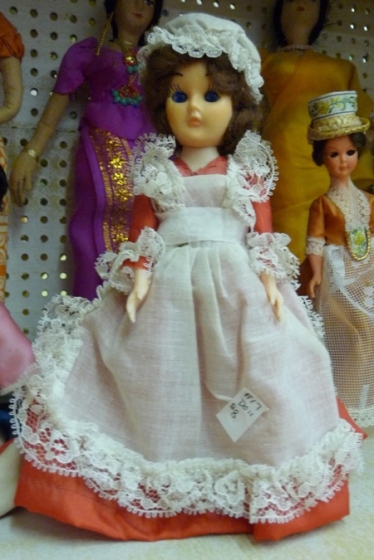 I got this Betsy in a lot of dolls on eBay in September 2010. Her dress is a bluer shade than the purple-frocked dolls.