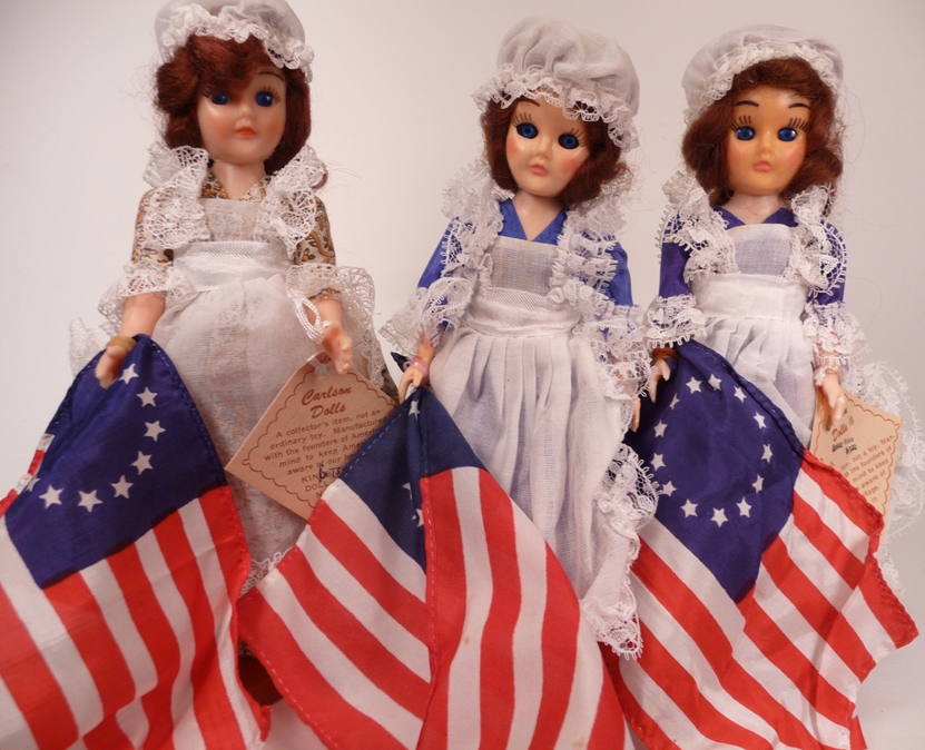 A view of all 3 Betsy dolls I have. Note the difference between the indigo and violet dresses.