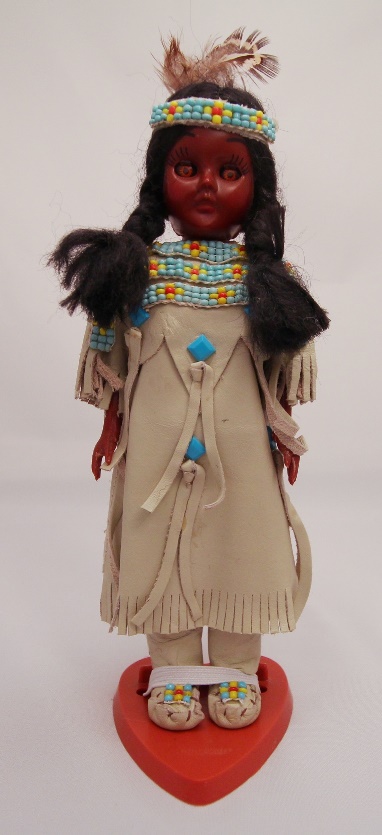 This is a Carlson Crow Princess doll. She has a tan leather dress with nice beading.