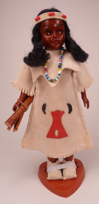 This is a Carlson Nez Perce princess doll. There is also a version of her with a dark brown and red dress. According to the catalog, she is the Nez Perce Princess. To the right is the Nez Perce Princess which appearsin the catalog. Note the similar costumes.