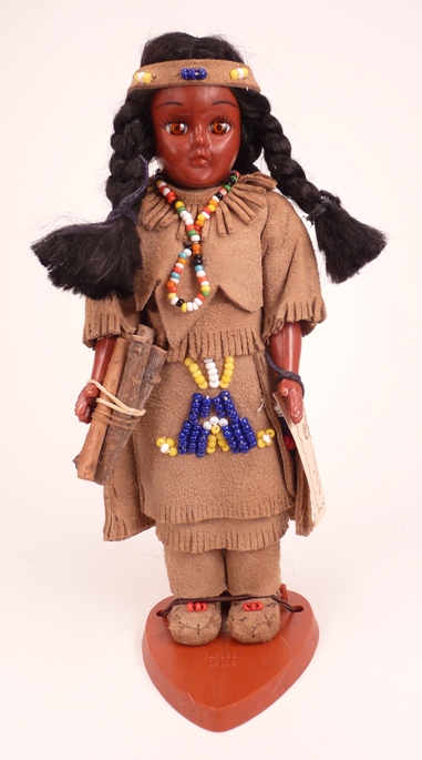 This is a Carlson Shoshoni Princess doll, numbers 20-82 & 12-9. There is also a version of her in bright turquoise suede.