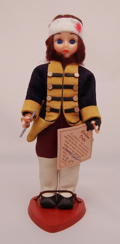 This is a Carlson Wounded Soldier doll, number 8-119. His out fit is leather and he has a cloth bandage on his head wound.He came with a flute.