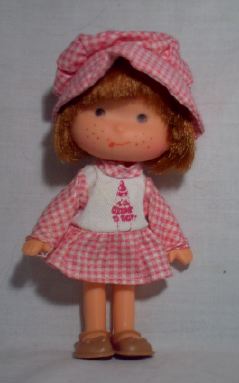This particular Fun World doll is called Milk Shake. These dolls have food/candy themes. An obvious Strawberry Shortcake knockoff, she has a cheap plastic body and thin rubber shoes.