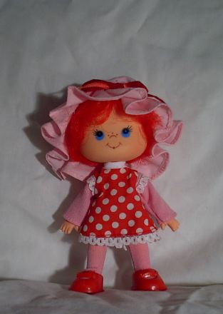 This particular Jellybean doll is called Very Cherry. One of the better Strawberry Shortcake knockoffs, this doll has a nice smell, a vinyl body, and nice rubber shoes. There was also a series of similar dolls from Lanard with a crayon theme. Lanard also made a series of dolls with Lacey dresses and a series with a sports theme.